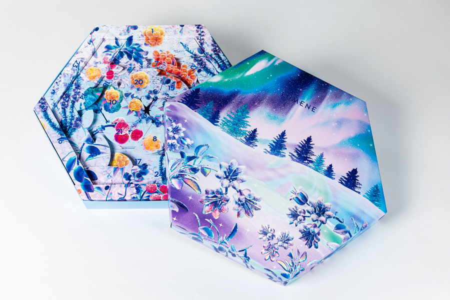 Den konceptuella idén är att visa Lumenes ursprung: rena, naturliga ingredienser från det rena, kalla Norden. Visuellt framhävs norrsken och kall snö i steg 1. När du tittar djupare in i denna tredimensionella förpackning gräver du dig faktiskt ner i snön, i steg 2: där växter och bär avslöjas under snötäcket. Smart och minimal användning av specialeffekter stödjer berättelsen – utan att kompromissa med konceptets hållbarhet. Steg 3: är att ”plocka bären” – öppna lådan och ta emot överraskningen.