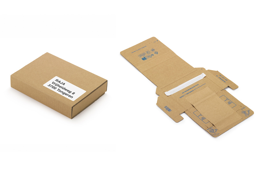 Direkt klar för användning – lägg i telefonen och vik ihop lådan. Försluts med självhäftande täckremsa. Öppnas med zip/riv-remsa.