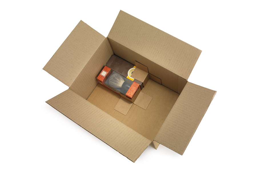 Förpackningen levereras platt och är enkel att vika och fylla med produkter.