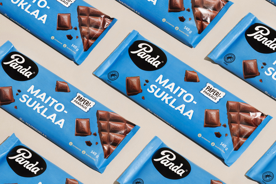 UPM Specialty Papers och Orkla Suomi har testat ett nytt pappersomslag för Panda mjölkchoklad.